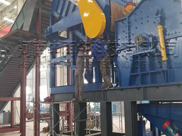 破碎機主機機器外殼采用液壓升蓋裝置,檢修方便快捷,輸料斜坡裝有超強力雙筒加料裝置,位置一高一低,同向旋轉,能將大件松散料逐漸壓扁,送入機內。滾筒的轉速決定了送料速度,它受主機馬達負荷電流反饋控制,實現自動調節,確保主機負荷狀態正常。不能破碎物進入機體后,操作人員開啟排放門,將其排出機體,以免損壞廢鋼破碎生產線。整機設計大方合理、結構緊促、操作簡單方便、性能穩定、產出量大等顯著優點。還可根據用戶要求合理改進。